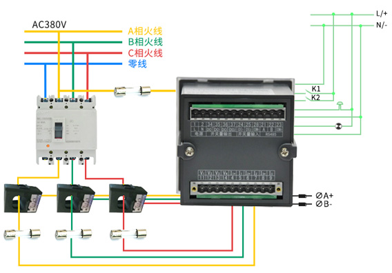 技術要求:輸入電壓三相AC380V;電流變比100A/5A;接線方式三相四線;準確度0.5級。