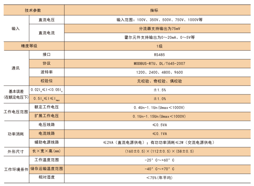 技術(shù)要求:電壓輸入DC750V,電流輸入DC300A/75mV