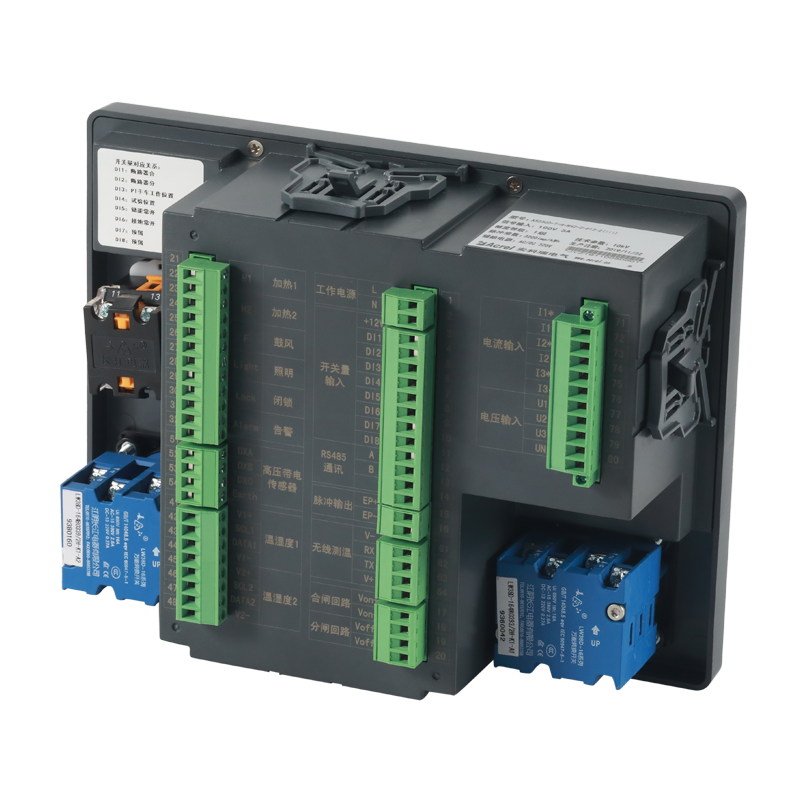 ASD系列開關(guān)柜綜合測控裝置具有一次回路模擬圖及開關(guān)狀態(tài)指示、高壓帶電顯示、自動(dòng)溫濕度控制、人體感應(yīng)自動(dòng)照明、語音提示、電參數(shù)測量及RS485通訊接口等功能,集操作、顯示于一體,直觀地體現(xiàn)柜內(nèi)元件的工作狀態(tài)及工作環(huán)境。