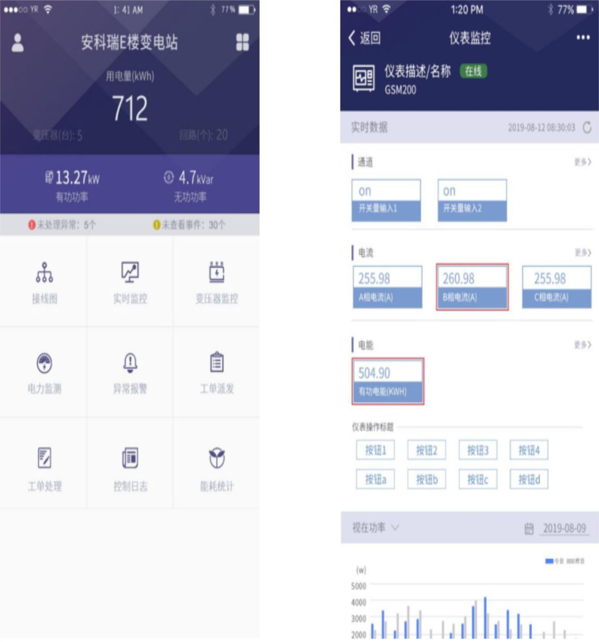 APP支持Android、iOS操作系統(tǒng),方便用戶按能源分類、區(qū)域、車間、工序、班組、設(shè)備等不同維度掌握企業(yè)能源消耗、效率分析、同環(huán)比分析、能耗折標(biāo)、用能預(yù)測、運行監(jiān)視、異常報警等。