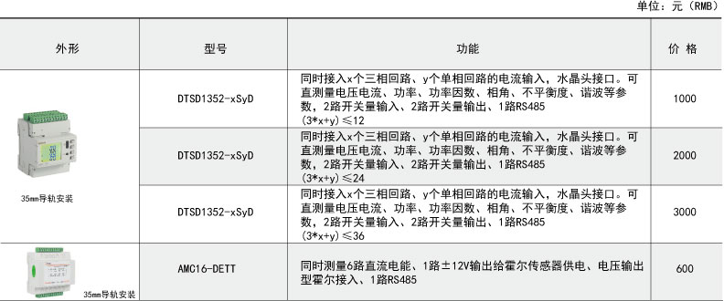 DTSD1352 - xSyD系列導(dǎo)軌式多回路電力儀表主要用于多個三相回路的全電參量測量,最多可同時接入x個三相回路、y個單相回路的電流輸入??芍苯踊蜷g接測量電壓電流、功率、功率因數(shù)、相角、不平衡度、諧波等參數(shù)。