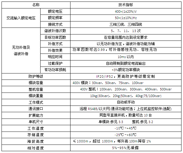 適用于頻率50Hz電壓0.4kV電網的無功功率動態(tài)補償。